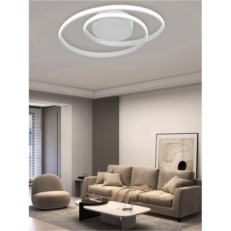 Plafoniera a led dal design moderno dalla forma circolare composto da un unico cerchio che si interseca creando un elegante forma a spirale. Caratteristiche: Alimentazione: AC 220-240V Frequenza: 50/60HZ Potenza 32 watt Flusso luminoso: 2560 Lm Angolo del fascio luminoso: 240 Indice resa cromatica: CRI: RA>80 Gradi Kelvin: Luce Fredda 6500k Dimmerabile: NO Materiale: alluminio +pvc Colore della struttura: bianco Peso 1.3 Kg Dimensioni: Ø450xH50 mm Contenuto della confezione: N 1 Plafoniera a luce bianca