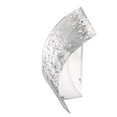 Materiale: metallo e vetro decorato in foglia ARGENTO. Piastra per fissaggio al soffitto in metallo bianco. Il fissaggio deve essere effettuato tramite tasselli su pareti in muratura o tramite viti autofilettanti su pareti in legno.