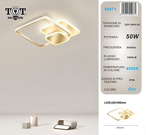 Plafoniera luce led quadrata 50w lampadario da soffitto oro geometrico design moderno per camera cucina (Luce Fredda)