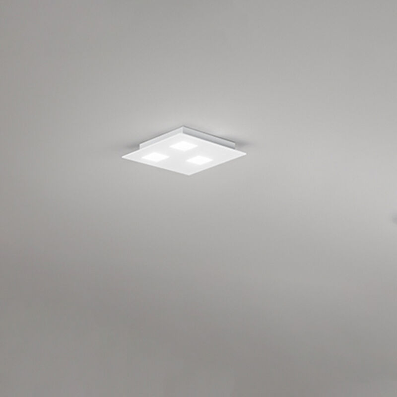 Plafoniera in metallo e alluminio verniciato a polvere con diffusori in acrilico satinato.