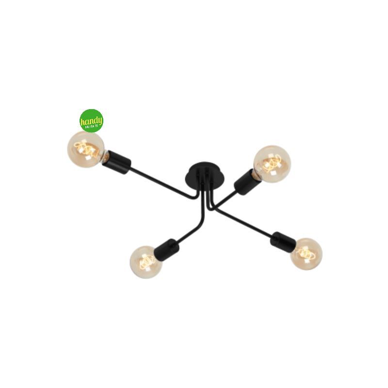 Plafoniera da interno in metallo, esprime a pieno il concetto di stile e design industriale grazie alla colorazione nero - oro, con finitura spazzolata, riuscendo a generare un notevole colpo d'occhio, nonostante la semplicità, infatti è costituita da 4 bracci disposti a croce, di dimensioni differenti, dotati sulla parte finale, di portalampada E27, in grado di ospitare qualsiasi tipo di lampadina a LED, per ottenere così la tipologia e l'intensità luminosa che si necessita. Particolarmente indicata in ambienti dalle medie e grandi dimensioni, e soprattutto fortemente raccomandata a chi necessità di un apparecchio di illuminazione che nella sua semplicità riuscirà a farsi notare, sposando a pieno il concetto di stile industriale, risultando un vero e proprio complemento d'arredo, anche da spento.
