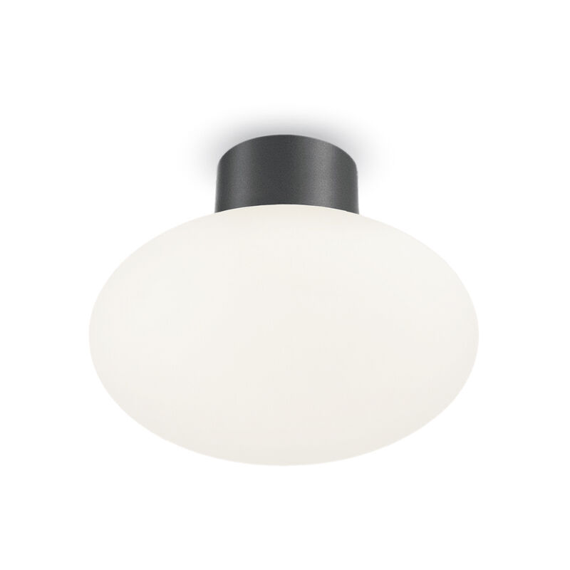 Collezione Clio SFERE SINUOSE Plafoniera da esterno 1 Luce E27 max 60W. Articolo componibile con montatura in alluminio estruso e tornito, rifinito con vernici a polveri di colore antracite.. DIFFUSORE NON INCLUSO