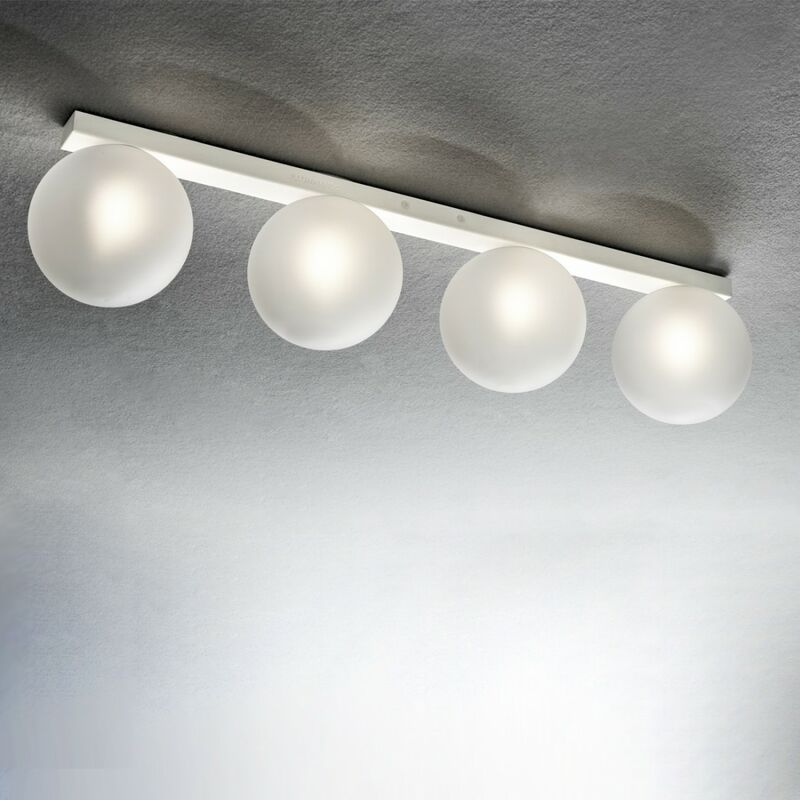 Plafoniera da soffitto o da installare anche a parete per un illuminazione a largo raggio e senza limiti. Una lampada da parete o da soffitto adatta per qualsiasi stanza, di passaggio o di sosta, per grandi e piccoli. Plafoniera moderna Illuminando PALLINA PL4 ST Lampada soffitto-parete, vetro sfera satinato, G9 led Installazione soffitto o parete. Montatura in metallo bianco. La classe energetica A, A+, A++ dipende dal consumo della lampadina al momento dell'acquisto. La tonalità della luce, calda (3000°K), naturale(4000° K) o fredda (5000°K) dipende dall'acquisto della lampadina. Globo vetro satinato. Illuminazione diffusa. L'applique-plafoniera Pallina PL4 è provvista di quattro portalampade attacco G9 per lampadina a led. Stile moderno. Studio & design Illuminando. Installazione: SOFFITTO-PARETE N. punti luce: 4 Modello lampadine: G9 LED Lampadina: ESCLUSA/E Dimmerabile: SI (P) con APPOSITE LAMPADINE DIMMERABILI DA COMANDARE TRAMITE INTERRUTTORE A PARETE Diametro (cm): 14