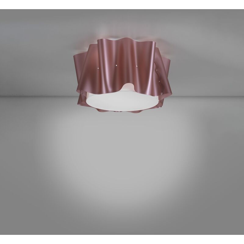 Collezione Folio DESIGN EFFETTO TESSUTO Lampada da soffitto moderna a 1 luce realizzata in polilux rosa metallico. Il materiale in cui è realizzata garantisce trasparenza e diffusione della luce, consentendo così di illuminare e arredare gli ambienti, scaldandoli e rendendoli accoglienti con particolare attenzione e cura ad ogni singolo dettaglio. Disponibile in diverse misure e finiture, la linea è composta anche da sospensioni, appliques, lampade da tavola e da terra. La lampada, disegnata dal design studio di MM Company, è formata da un'anima cilindrica in Polilux, alla quale è stata abbottonata una seconda superficie curva, che ricrea l'effetto morbido e leggero di un tessuto.
