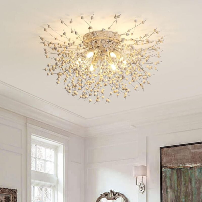 Design creativo del dente di leone - Questo esclusivo lampadario a forma di dente di leone con perline di legno aggiungerà un elegante fascino retrò alla decorazione della tua casa. La lampada utilizza la rifrazione di perline di legno per diffondere la luce, creando un accattivante spettacolo pirotecnico. Che si tratti di un pasto o di una riunione, le luci del dente di leone creano un'atmosfera romantica e accogliente, riempiendo la stanza di una bellezza affascinante. 【Dimensioni della plafoniera】Diametro 55 cm x altezza 30 cm, dimensioni del baldacchino: 15 cm, dimensioni della stanza consigliate: 7-10 m². Facile da installare, basta seguire le istruzioni e il video sulla scheda della plafoniera. 【Lampadine e interruttore non inclusi】 Questa luce presenta un attacco 6xG9, massimo 25 W per lampadina (lampadine NON incluse). Diverse temperature di colore della luce dipendono dalle lampade utilizzate. Questa lampada a sospensione con fuochi d'artificio è dimmerabile se utilizzata con