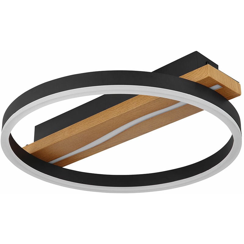 Descrizione Questa moderna plafoniera colpisce per il suo design semplice e le sue funzioni. Un pannello LED a forma di anello con un diametro di 40 cm si trova su una base rettangolare in metallo nero opaco con decorazioni in legno e una striscia LED. I pannelli LED emettono una luce bianca calda da 2700 Kelvin a 6000 Kelvin bianco freddo, che può essere regolata e fissa. Con il telecomando integrato è possibile azionare una luce notturna e una funzione di memoria e spegnerle con un timer. Metti gli accenti nei tuoi locali. Una lampadina a LED è installata in modo permanente nella lampada! Particolare lampada • Tipo di lampada: plafoniera • Materiale: metallo, acrilico, legno • Colore: nero, marrone • Telecomando • dimmerabile • Luce notturna • Memoria funzione • Circuito CCT (2700-6000K) • Lunghezza x larghezza x altezza in cm: 44 x 40 x 9,5 • Illuminante: 1x LED • Lampadine incluse: Sì (installate in modo permanente) • Potenza lampada: 1x 22 watt • Flusso luminoso: 1x 850 lumen