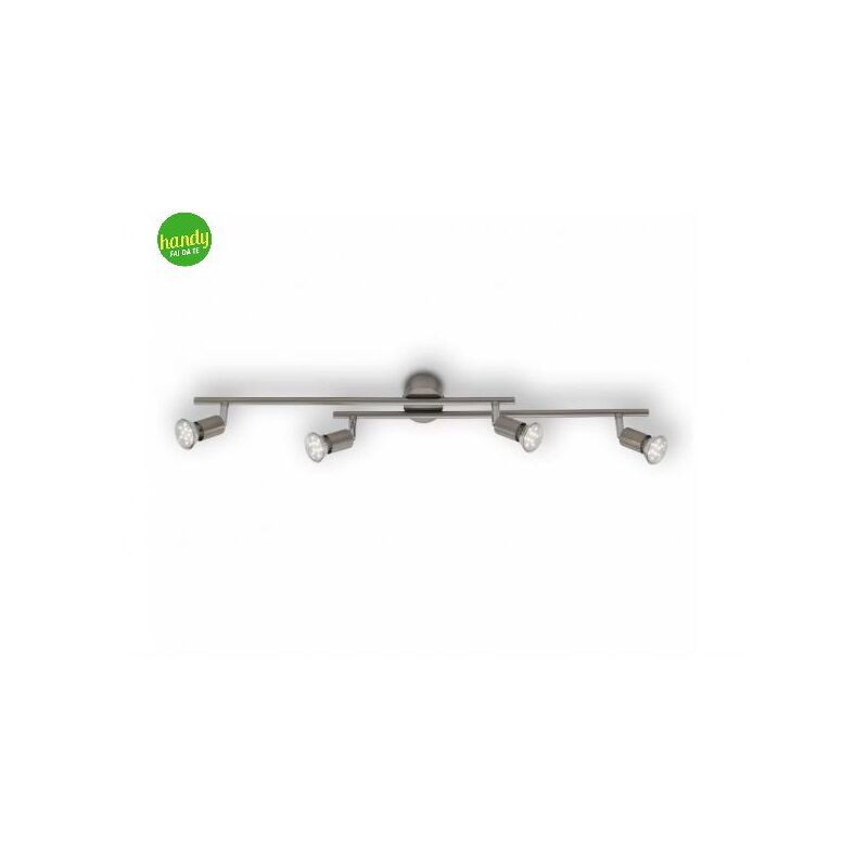 Dalla linea di articoli dedicati all'illuminazione da interno a marchio BRILONER, la plafoniera da interno da parete in metallo è perfetta per essereinstallata dove è necessaria una luce da focalizzare in un determinato punto grazie al quadruplo snodo mediante i quali è possibile orientare i fasciluminosi, come in una cabina armadio o in stanza con poca illuminazione indeterminati punti per veicolarne il più possibile dove più richiesta. Al suo interno vi sono già quattro lampadine con attacco GU10 da 3 Watt capaci di erogare 25 Watt di luce per portalampada con una tonalità di colore calda che rende l'ambiante riposante non alterando i colori, ma nel caso servisse più illuminazione è sempre possibile sostituire le lampadine con altre sempre con tecnologia LED ma di potenza superiore o tono di luce più bianco in base alle proprie esigenze. Il design minimale e la colorazione nickel rendono questa struttura adattabile a qualsiasi tipo di ambiente che sia classico o più moderno.