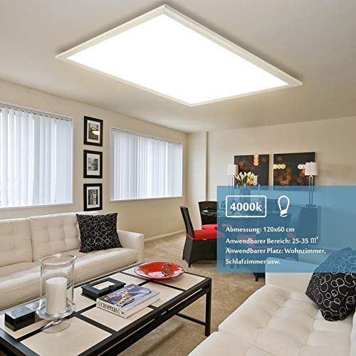 ►►► Risparmio energetico di lunga durata: questo pannello LED a risparmio energetico 120 x 60 consente di risparmiare nervature e corrente. Con un consumo energetico di 72 W, questa plafoniera a LED produce circa 5000 lumen. Lunga durata di vita di 35.000 ore.