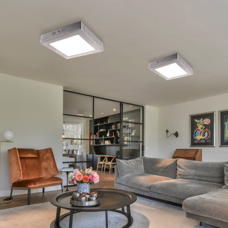 Descrizione Elegante plafoniera per la tua casa. Questa lampada colpisce per la sua eleganza e il design accattivante. Il paralume quadrato con angoli arrotondati crea un'atmosfera armoniosa nelle vostre quattro pareti. Grazie al design moderno è possibile integrare la lampada in quasi ogni spazio abitativo. Pannello LED per un'illuminazione senza ombre adatta al lavoro in ambito commerciale. La temperatura di colore di 3000 K garantisce un lavoro piacevole e senza fatica. Nella consegna è inclusa una sorgente luminosa a LED. Nella consegna sono incluse due luci! Lampada dettagli • Tipo di lampada: plafoniera • Materiale: metallo, argento • Paralume: vetro satinato • Forma: quadrata • Larghezza x lunghezza x altezza in cm: 12x12x4 • Sorgente luminosa: 1x LED • Lampade installate permanentemente • Sorgente luminosa: 1x 6 watt • Colore della luce: bianco caldo • Flusso luminoso: 400 lumen • Alimentazione: 220-240 V, 50-60 Hz Dettagli lampadine • Base: LED • Flusso luminoso: 400 lm