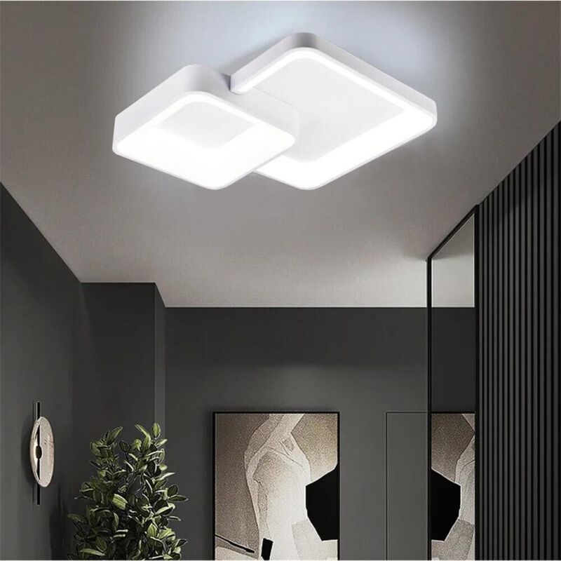 Plafoniera led composta da due quadrati con tre colorazioni di luce bianca calda e naturale selezionabile ad ogni accensione e spegnimento il lampadario più volte. Caratteristiche: Potenza: 58 watt Flusso luminoso: 4640 Lm Fascio luminoso: 180 3 Modalità di colore: 3000K-4000K-6500K Dimmerabile: Si Tensioni di ingresso: 220-240V 50/60 Hz Indice di resa: CRI(RA)>80 Colore esterno: Bianco Materiale: Metallo + Acrilico Dimensioni: 725xx590x100mm Peso: 2.800 Kg Contenuto della confezione: N 1 Plafoniera