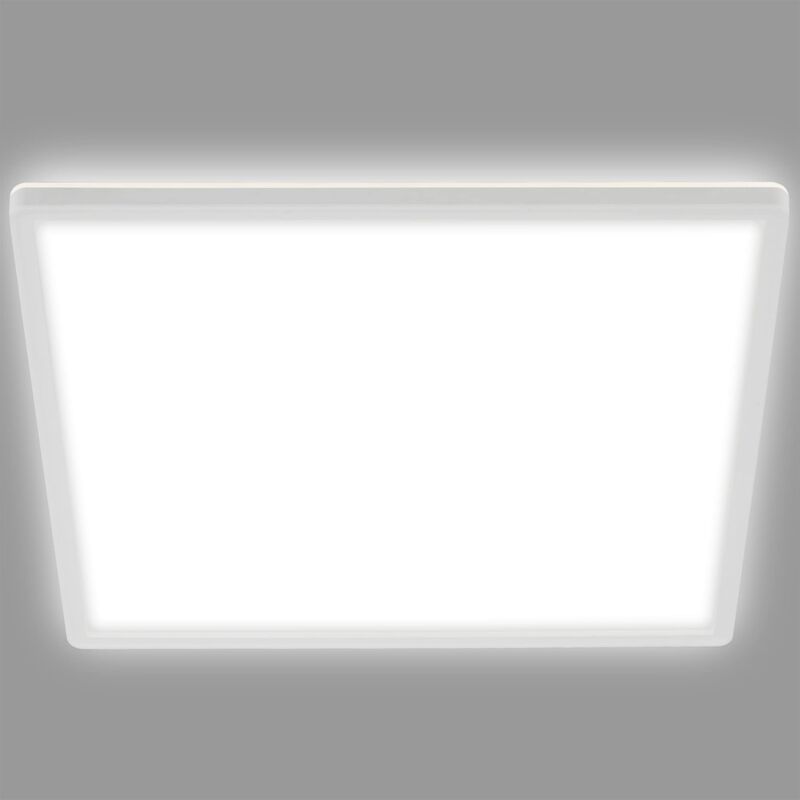 Moderno pannello a LED quadrato, di colore bianco, realizzato in plastica. Extra sottile grazie alla tecnologia LED più avanzata, questa lampada per il salotto è ultra piatta (solo 2, 9 cm) e dà un tocco di sobria eleganza. Grazie all'effetto di retroilluminazione indiretta, la plafoniera a LED crea un'atmosfera piacevole e un'illuminazione perfetta. La plafoniera a LED conquista tutti con le sue linee semplici e i suoi 22 watt a rirmio energetico, un flusso luminoso di 3000 lumen e una temperatura di colore di 4000 kelvin, inoltre si adatta a diversi tipi di ambiente, tra cui ad es. Il soggiorno e la camera da letto. Dimensioni del prodotto: 420 x 420 x 29 mm (lunghezza x larghezza x altezza).