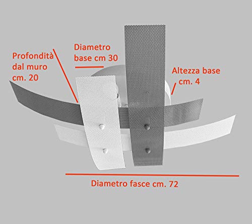 Diametro base cm. 30 altezza base cm. 4 - diametro plafoniera cm. 72 - altezza plafoniera cm. 20. 100% Made in Italy - PROGETTATO E PRODOTTO IN ITALIA