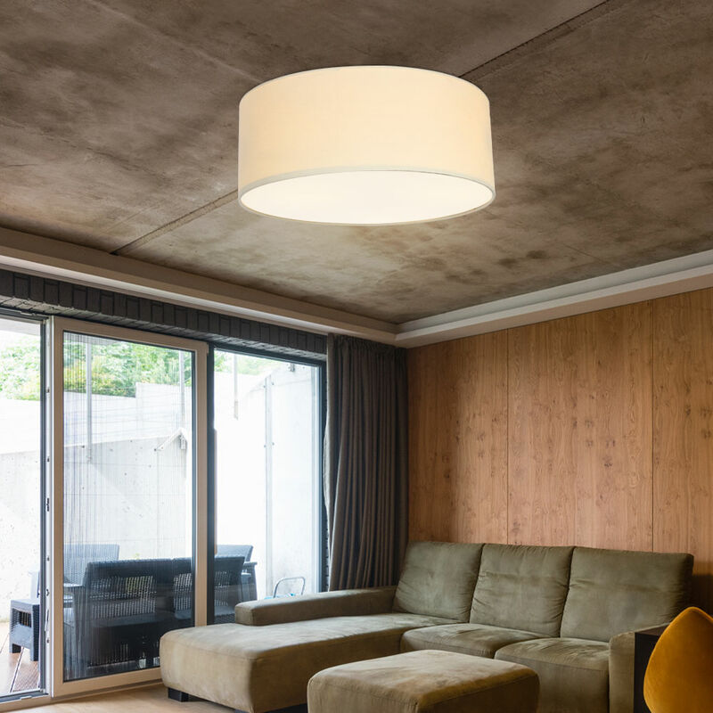 Descrizione Elegante plafoniera beige per il tuo soggiorno. Illumina il tuo spazio abitativo con questa bellissima lampada da soffitto. Il paralume in tessuto crea accenti eleganti e mostra buon gusto. La lampada è chiusa nella parte inferiore in modo che tu possa godere di una luce priva di abbagliamento nel tuo soggiorno. Dotato di tre attacchi E27, puoi inserire nella lampada lampadine con una potenza massima di 40 watt ciascuna e determinare così il colore e l'intensità della luce. A causa del risparmio energetico e della longevità, si consiglia l'uso di lampade a LED. Le lampade non sono incluse nello scopo di consegna. Dettagli lampada • tipo lampada: plafoniera • materiale: metallo, bianco • paralume: tessuto, plastica • colore: beige • diametro x altezza in cm: 40 x 16,5 • prese: 3x E27 • lampadine incluse: No • lampadine elettriche: 3x max 40 watt • alimentazione ung: 220-240V, 50-60Hz