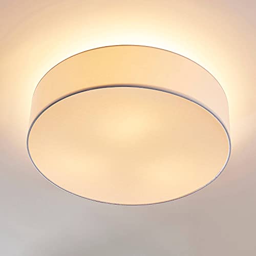 Plafoniera 'Sebatin' dimmerabile (Scandinavo) colore Bianco, in Tessuto ad es. Cucina (3 luci, E27) di Lindby | plafoniera in tessuto, plafoniera, lampada