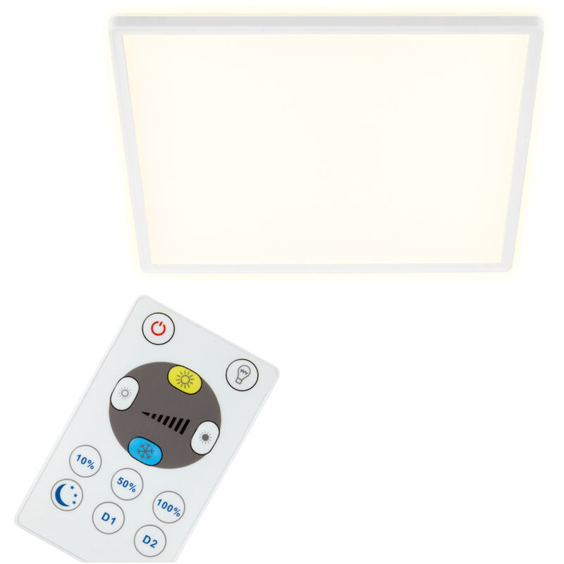 Plafoniera a LED "Slim", LED CCT Bianco, 42x42 cm. Lampada dal design semplice, perfetta per essere utilizzata in camera da letto, in soggiorno, in cucina o in corridoio. Plafoniera a LED dimmerabile tramite telecomando. Avrai la possibilità di scegliere tra luce calda e luce fredda (2700K - 6500K).Dotata di funzione dell'effetto retroilluminazione, la plafoniera a LED crea un'atmosfera piacevole e fornisce un'illuminazione ottimale.Controllabile con telecomando. Caratteristiche: Dimensioni: 420x420 mm Altezza 28 mm Materiale Plastica Watt: 22 Protezione: IP20 Lampada: LED Lumen: 3000 lm Caratteristiche del prodotto Colore Bianco Colore luce (K) 2700 - 6500 Dimmerabile S Grado protezione IP20 Lumen 3000 lm Potenza (W) 22 Dimiensioni prodotto Larghezza: 0.42 m. Altezza: 0.029 m. Profondit: 42.0 cm. Peso: 0.0 Kg. Dimensioni Imballo Larghezza: 0.0 cm.