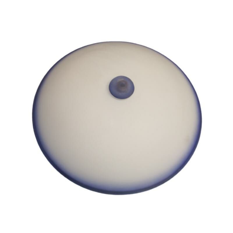 PLAFONIERA DA SOFFITTO PER INTERNI, TONDA IN VETRO SATINATO BIANCO CON SFUMATURE E FERMA VETRO BLU;