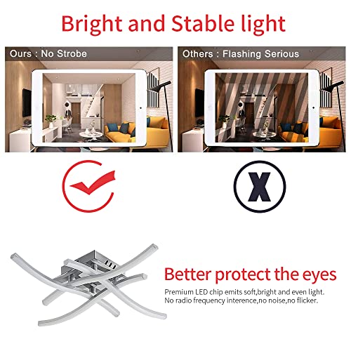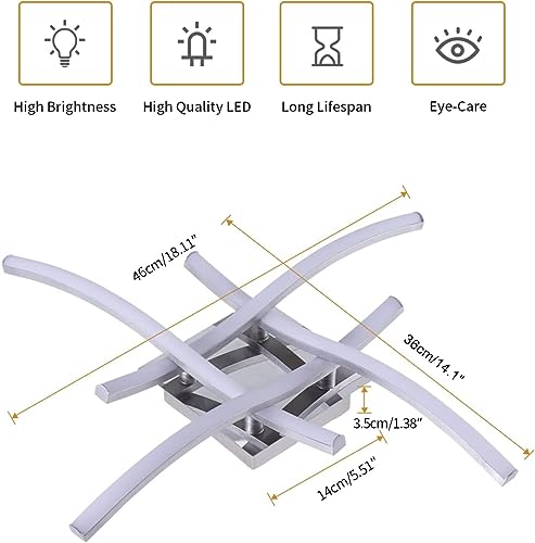 【La luce naturale protegge gli occhi】Chip LED di alta qualità che emette luce morbida, luminosa e uniforme. Nessuna interferenza in radiofrequenza, nessun rumore, nessuno sfarfallio, protegge meglio gli occhi. La plafoniera ha 4 bracci a forma di onda lunghi 36 cm, dimensioni del prodotto 46 * 46 cm, LED integrato, luce bianca naturale.