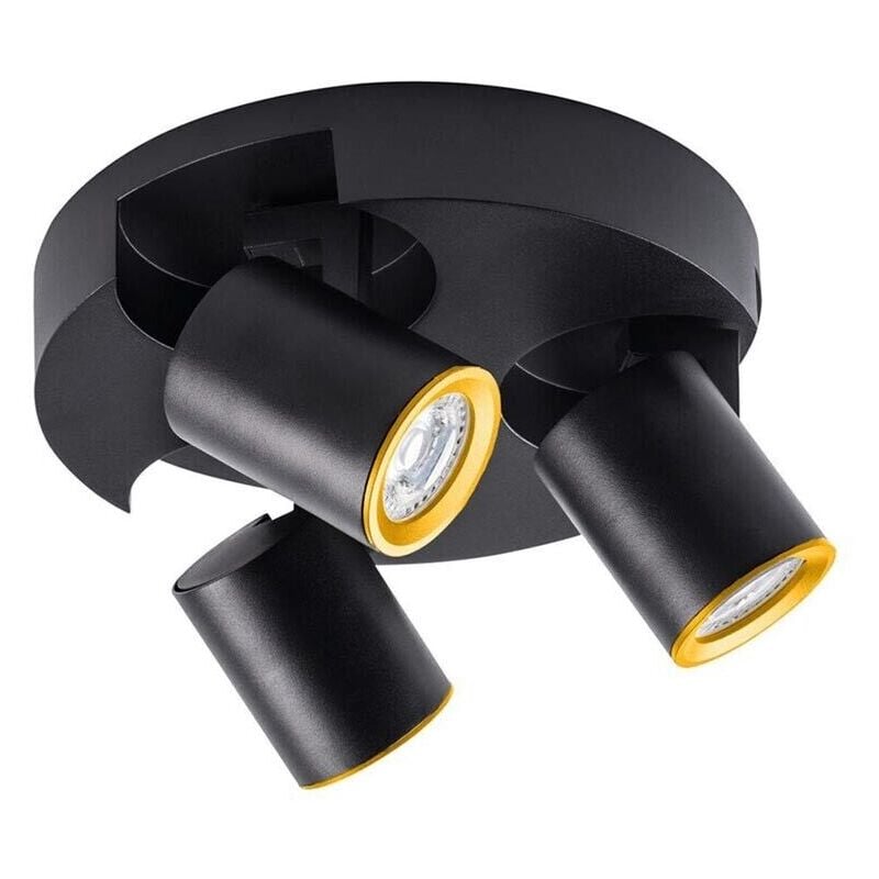 Plafoniera rotonda con 3 faretti fascio di luce orientabile da design elegante ed è contemporaneo realizzato in lega di alluminio di colore nero con rifiniture oro. Ideale per essere istallato al soffitto ed è perfetto per illuminare negozio hotel bar b&b ingresso di casa corridoio o qualsiasi stanza. Dotato di una piastra tonda con 3 diffusori orientabili con attacco gu10(faretto non incluso). Caratteristiche: Tensione di ingresso: AC220-240V 50/60Hz Diametro base: 220 mm Dimensioni faretto: 10.8x58 mm Peso: 890 gr Colore: nero/oro Contenuto della confezione: Porta faretto triplo