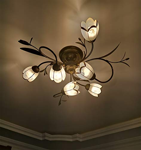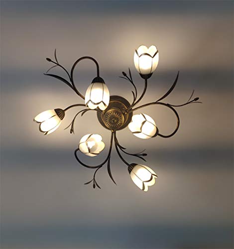 Plafoniera da Soffitto in Metallo Colore Oro a Forma di Fiore 6 luci x 40W E14