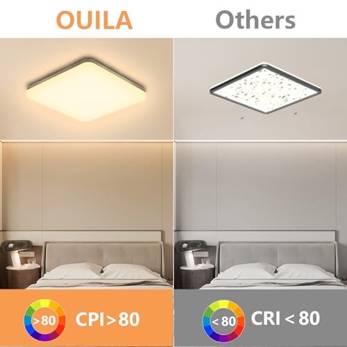 IMPERMEABILE, DUREVOLE E SICURO: La plafoniera bagno adotta un design impermeabile IP44, può essere utilizzata in ambienti umidi. La plafoniere OUILA adotta un guscio di plastica realizzato in materiale opaco PC di classe A di alta qualità, resistenza alle alte temperature, non facile da invecchiare, non facile cambiare colore, che ha una migliore trasmissione della luce e dissipazione del calore rispetto ad altre plafoniere. È antiurto, resistente alle vibrazioni e isolato.