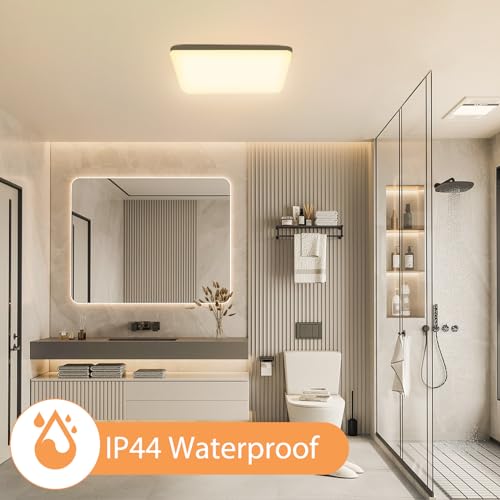 Plafoniera LED Soffitto Quadrata 20W, Lampada da Soffitto Moderno 3000K 2000LM Plafoniera Bagno IP44 Impermeabile Lampadario LED Luce Soffitto per Ufficio, Camera da Letto, Cucina, Soggiorno, Balcone