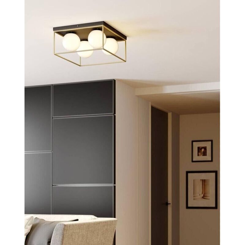 Plafoniera da soffitto in metallo di color bronzo con le sfere in vetro bianco. La sua forma particolare arreda il tuo ambiente con stile ed eleganza. Per ogni sfera va utilizzata la lampadina con attacco G9 (non incluse). Tensione di ingresso: 110-240V 50/60Hz Materiale: Metallo e Vetro Colore: Bronzo e nero Dimensioni:40x40x16mm Peso: 3.0Kg Contenuto della confezione: N 1 Lampadario