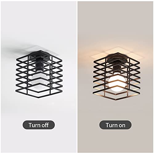 Plafoniera Soffitto Vintage E27 Gabbia Metallica Nera Quadrata Vintage Plafoniera Massimo 40W Adatta per Come Soggiorno, Sala da Pranzo, Corridoio, Caffetteria (Senza Lampadine)