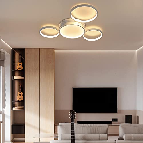 ZMH Plafoniera Soggiorno LED Plafoniera-Moderna Luce Bianca Calda 29W Camera da Letto con 4 Anelli Design Luci Sala da Pranzo Camera dei Bambini Cucina Corridoio Camera dei Giovani Ufficio/Bianco