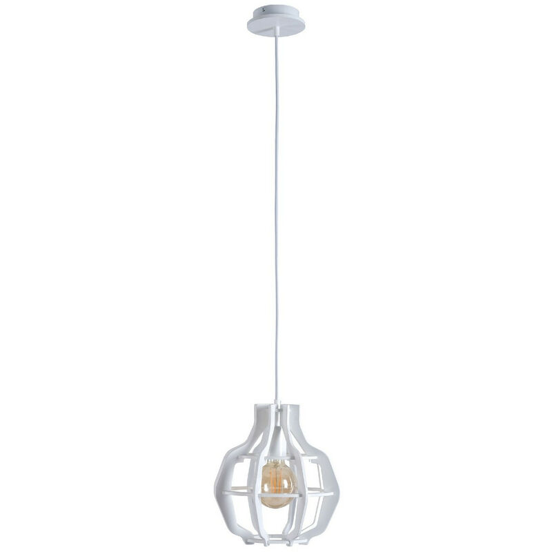 Keter Lighting - 632 Plafoniera a sospensione Bento Wire Frame bianca, 28 cm, 1x E27 | Finitura: bianco | Altezza: 110 cm | Lunghezza: 28 cm | Larghezza: 28 cm | Tipo di lampada: E27 | N. di lampade: 1 | Lampadina inclusa: no | Dimmerabile: Sì - Sono necessarie lampadine dimmerabili | Potenza (max): 60 W