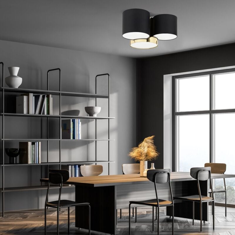 Dettagli del prodotto Materiale: Metallo, tessuto, plastica Dimensioni: larghezza: 420 mm, altezza: 300 mm, lunghezza: 540 mm Attacco: 3x E27 fino a. 15 W (nur für LED geeignet) Classe di protezione dagli spruzzi: IP20 Colore: Nero, Oro Peso: 1600 grammo