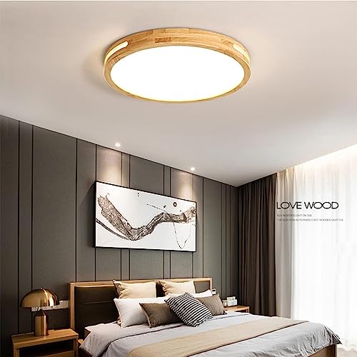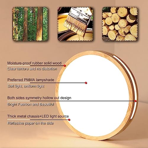 Plafoniera Tonda A LED In Legno | Dimmerabile Con Telecomando 3000K-6500K | Ø50 cm/19,7 Pollici/36 W | Svuotare Deisign Su Due Lati | Camera Da Letto/Soggiorno/Cameretta/Ufficio/Studio