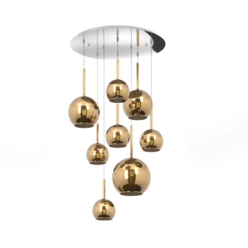 Piastra a otto luci rifinita con semplici vetri soffiati colorati e di dimensione diversa per un'illuminazione uniforme in qualsiasi tipo di stanza. Una lampada da soffitto da regolare in altezza e creare un gioco sfalsato di calate che donano movimento all'ambiente. Una plafoniera da installare su qualsiasi piano d'appoggio o al centro della stanza. Plafoniera 8 luci Future 1155 S8 TMIX Top Light vetri soffiati colorati Lampada soffitto, multiluce con piastra tonda, vetro colorato, diametro 15, 20, 25cm, E27 LED Lampade a sospensione composta da otto ampolle in vetro pirex soffiato regolabile in altezza. Struttura in metallo cromo lucido. La plafoniera è provvista di otto portalampade attacco E27 per lampadine a LED di qualsiasi wattaggio. Lampadine escluse. L'articolo FUTURE può essere personalizzato scegliendo tra i molti colori disponibili sia delle strutture (CR cromo, OS ottone satinato o BI bianco), sia dei vetri (TR trasparente, AM ambra, CR cromo, OR oro o RA rame) oppure