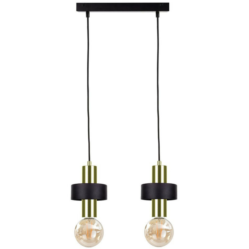 Keter Lighting - 309 Plafoniera Unica Bar Sospensione Nera, Oro, 50cm, 2x E27 | Finitura: nero, oro | Altezza: 120 cm | Lunghezza: 50 cm | Larghezza: 12 cm | Tipo di lampada: E27 | N. di lampade: 2 | Lampadina inclusa: no | Dimmerabile: Sì - Sono necessarie lampadine dimmerabili | Potenza (max): 60 W