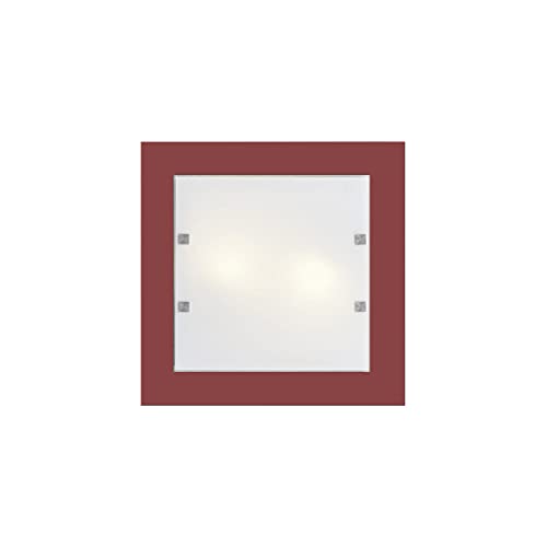 L+ plafoniera, in vetro e metallo, forma quadrata, larghezza 41cm, colore rosso e vetro lucido, Made in Italy