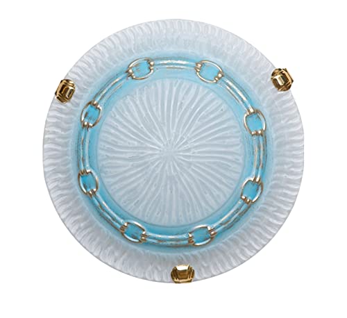 Plafoniera In Vetro Satinato Catena Azzurro Classica Con Gancio Oro, Plafoniere Soffitto Per Cameretta Bambini, Plafoniera Da Bagno, plafoniera soffitto da soggiorno e da ufficio (Azzurro D40)