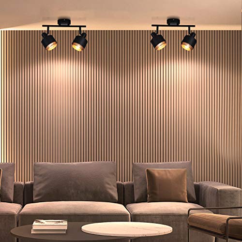 Design retrò: questo faretto da soffitto nero e oro sembra davvero retrò a prima vista. Le teste delle lampade realizzate in nero all'esterno e il paralume cavo dorato all'interno forniscono effetti di luce impressionanti e danno al tuo spazio vitale un carattere unico