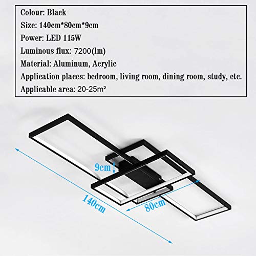 Plafoniera a LED, 115 Watt, 6000 Kelvin, plafoniera di colore nero, Alluminio, Moderno Quadrato Designer Soffitto Lamp per Soggiorno Camera da letto Sala da pranzo, 140x80x9cm