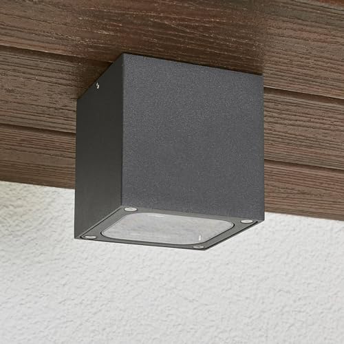 Plafoniere LED 'Tanea' (Moderno) colore Grigio, in Alluminio (1 luce, lampadina inclusa) di Lucande | lampada da esterni per giardino, terrazzo, balcone e casa, plafoniera LED