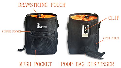 Plai Dog Treat bag con Poop bag dispenser, comoda coulisse interna della, cinghie regolabili - 3 modi da indossare. (include 1 rotolo di sacchetti di rifiuti (20 bustine), 1 ciotola per cani da viaggio, 1 Dog training clicker)