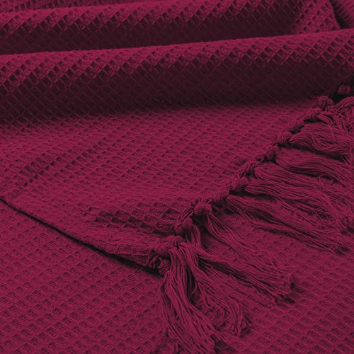 Plaid 100% cotone appositamente tessuto a mano - Plaid waffle color vinaccia