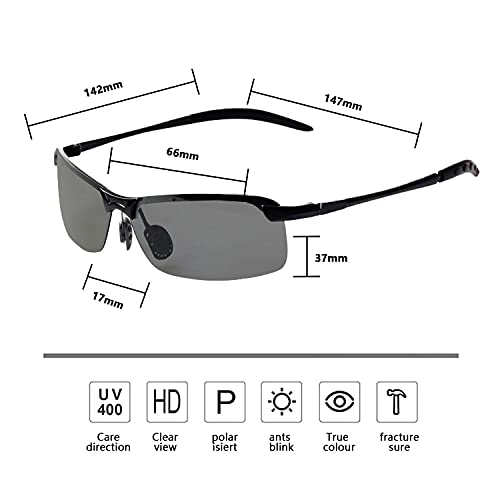 Plainshe Occhiali da Sole da Uomo Donna - Occhiali Guida Notturna- Fotocromatici Antiriflesso Polarizzati - Con Protezione 100% UV400