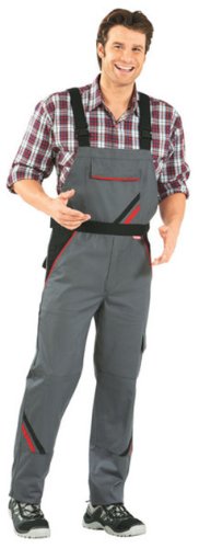 Planam Latzhose Highline MG Salopette, Ardesia, Nero/Rosso, 52 IT (38W/26L) Uomo