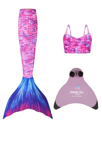 Planet Mermaid 3 pezzi di coda di sirena da nuoto dai colori vivaci, top tankini e monofin a pinna magica resistente all'usura (inclusa), Bacio Oceano, 10-11 anni