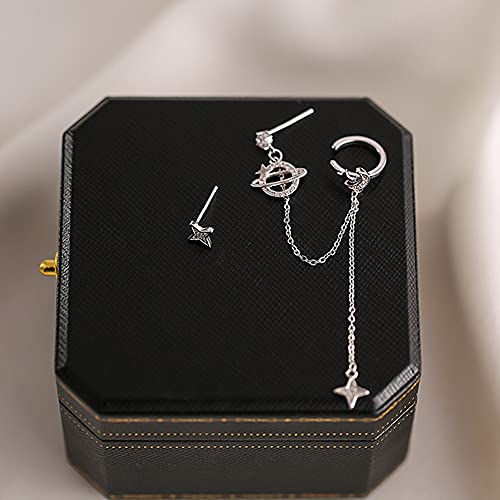 Planet CZ Moon Star - Orecchini a cerchio in argento Sterling 925 con chiusura a clip, per donne e ragazze adolescenti e ragazze, Argento sterling, zirconia cubica,
