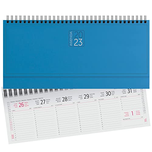 Planning Settimanale da Tavolo 2023 Agenda Spiralata da Scrivania 34x14 cm 10 Colori (Azzurro)