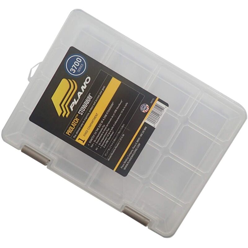 Tested for durability, Made in the USA, Made using the highest quality components, Includes Plano 2-3715 Pro-Latch StowAway, Plano brochure, nameplate order form, Great for maps and harder to store items, Half the size of a 3700 StowAway, One open compartment, Limited Lifetime Warranty