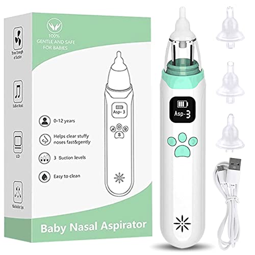 Plartree Aspiratore Nasale Neonato Elettrico,Aspirapolvere per Neonati USB Ricaricabile per Naso con 3 Livelli di Aspirazione,3 Punte in Silicone e Musica e Display a LED per Neonati e Bambini Piccoli