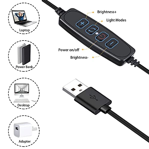 【Con porta USB e ampiamente utilizzato】 La luce ad anello per selfie ha una porta USB, è possibile collegare la porta USB al PC, all'adattatore o all'aliment