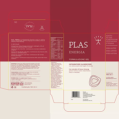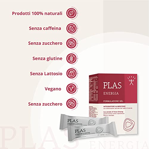 Plas Integratore stanchezza | Integratore stanchezza con arginina, taurina, vitamina b complex. Integratore aiuta stanchezza fisica e mentale. Stick gel monodose 10ml. Integratore stanchezza vegan