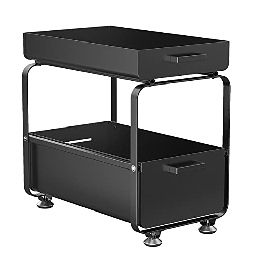 Plasaig Cassetto portaoggetti a 2 ripiani per cucina e bagno, cestello scorrevole in metallo, cestino portaoggetti estraibile per la casa e l'ufficio (Nero)